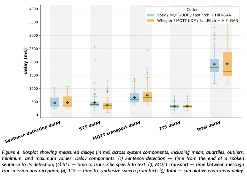 The experimental results show that this approach significantly reduces the strain on tactical networks by lowering data rate requirements—achieving up to 93.7% reduction in transmitted media data compared to traditional voice codecs, and 72% reduction when including signaling overhead—while maintaining low end-to-end latency, typically under two seconds.