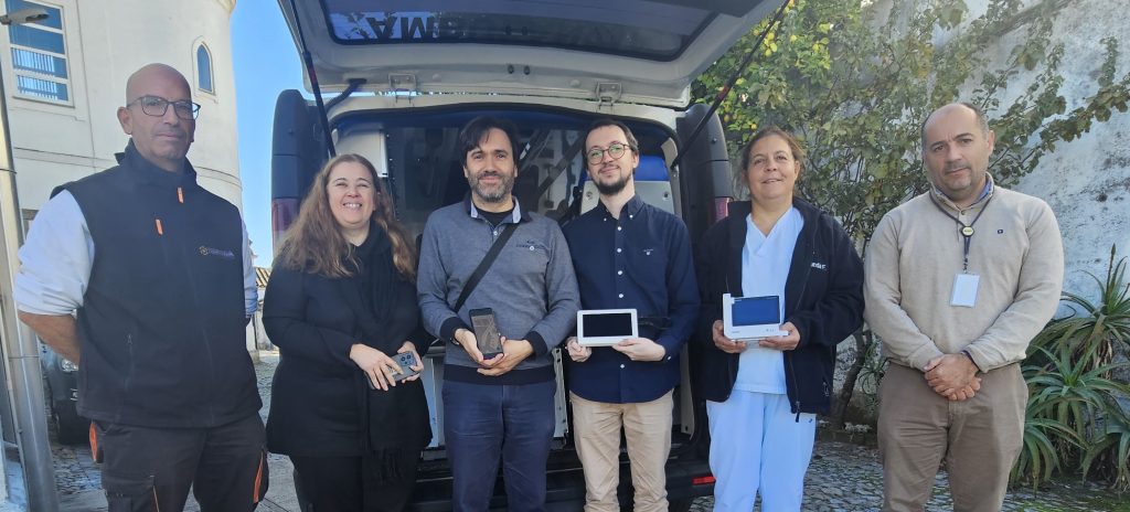 The simulation took place in two distinct phases: outside, using an intra-hospital ambulance, the scenario of attending to a patient in an emergency situation was recreated, including continuous monitoring of vital signs and real-time transmission of clinical information. Subsequently, in a clinical office at the hospital, access to dashboards with data from the ambulance (clinical status and location) was demonstrated, highlighting how these solutions can support the timely preparation of human and material resources before the patient’s arrival.