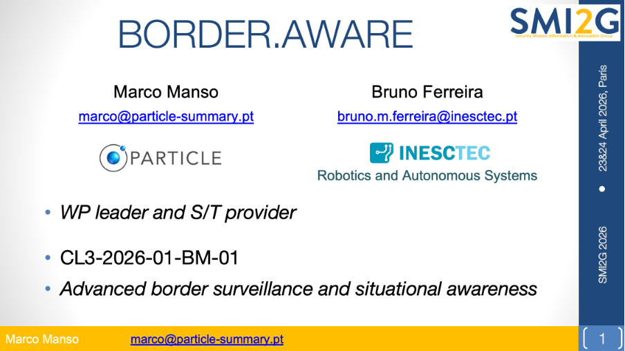 On April 23rd 2026, PARTICLE promoted the SEAGUARD project as part of a pitch presentation on Border Management proposals at the SMI2G 2026 Brokerage Event, hosted by the President of the Île-de-France Region, Valérie Pécresse.